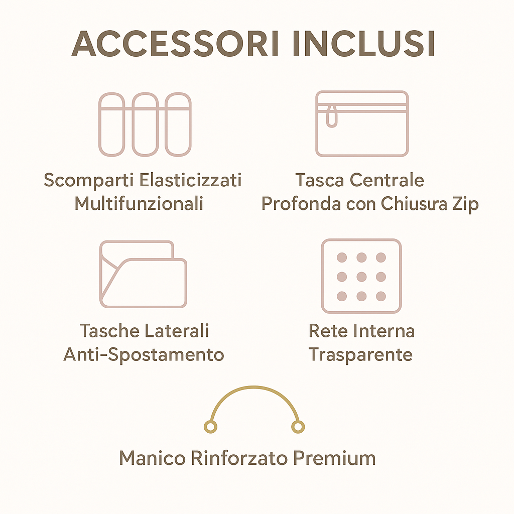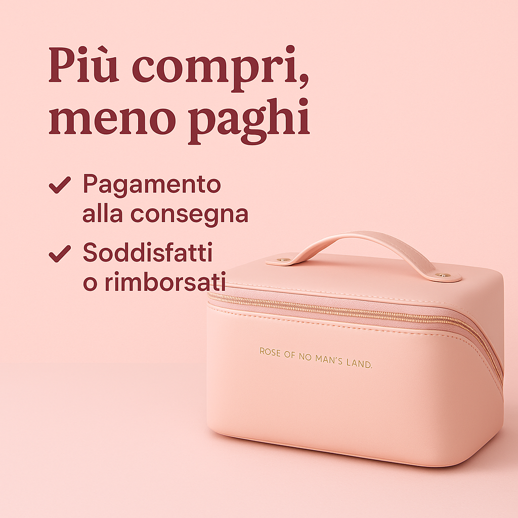 Mentre molti beauty-case economici si rompono o perdono forma, il nostro usa materiali impermeabili, resistenti e di qualità, in uno stile elegante e moderno che fa subito “lusso”.